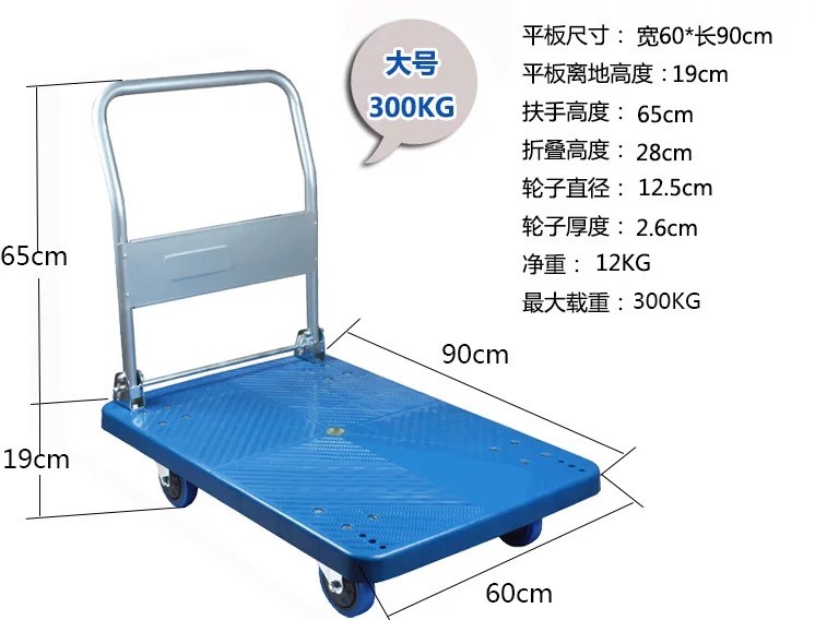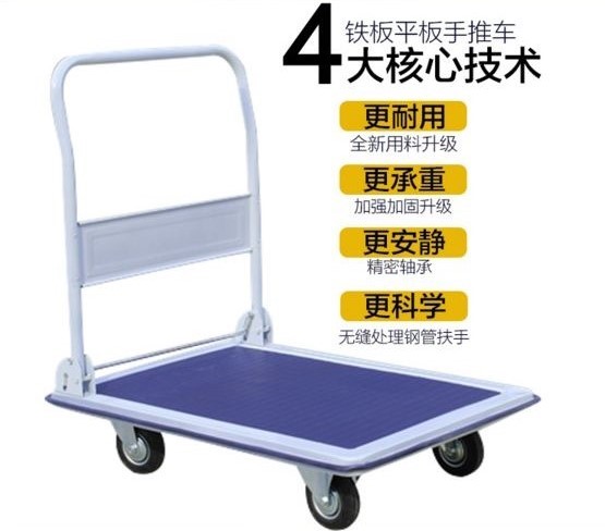 1) 靜音手推車車板為特種樹脂材料或冷軋鋼板,結實耐用。